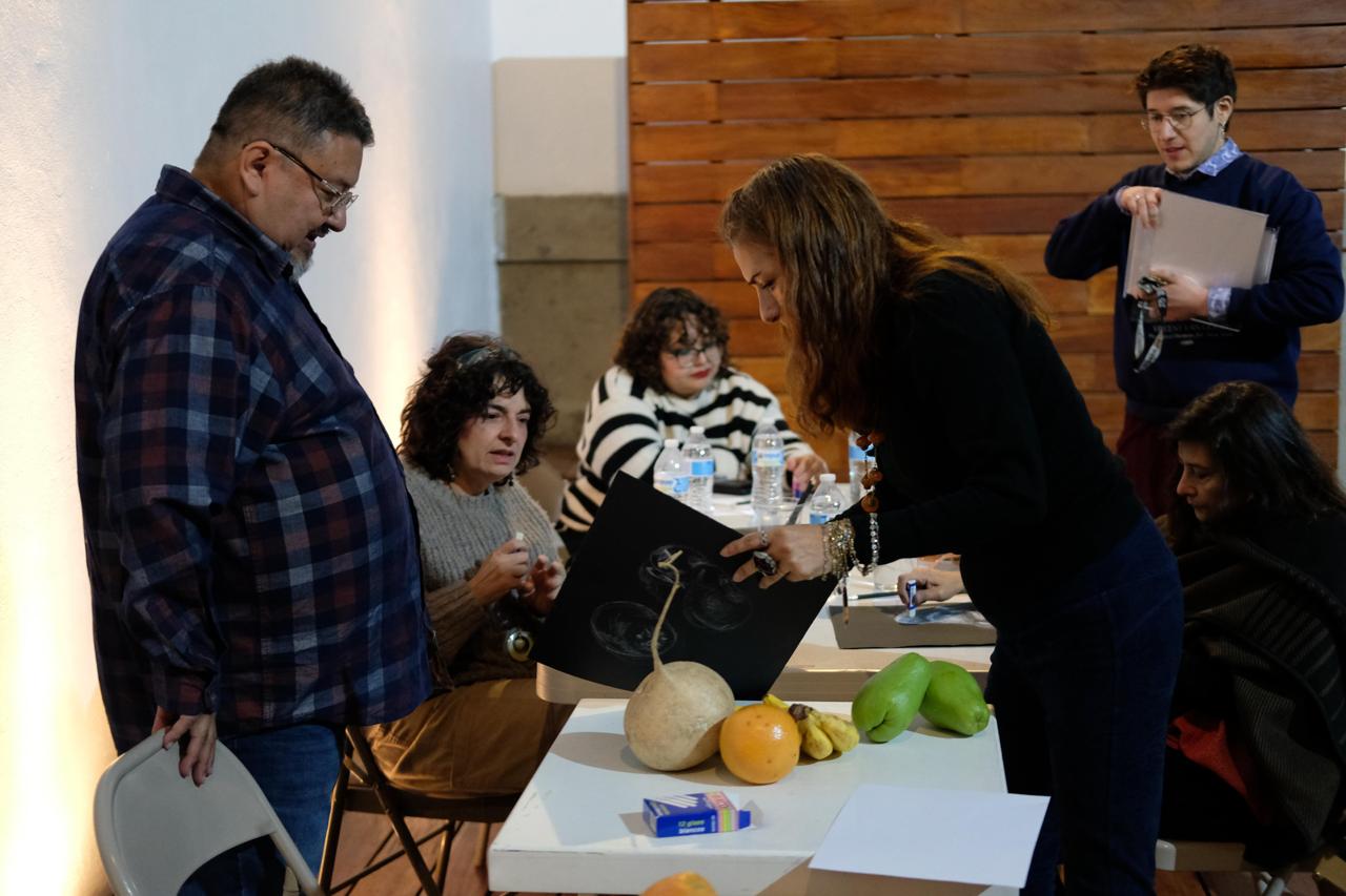 The workshop was held in an intimate and relaxed format, fostering a close dynamic between the instructors and the attendees. This setting allowed each person to focus on their own creative process while remaining open to dialogue, observation, and the exchange of ideas regarding drawing and its expressive possibilities.